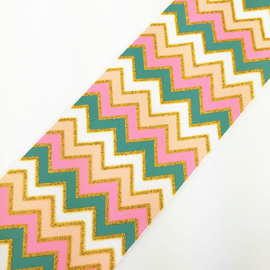 Heat-transfer printed Colorful Wavy Gold Glitter Grosgrain Ribbon
