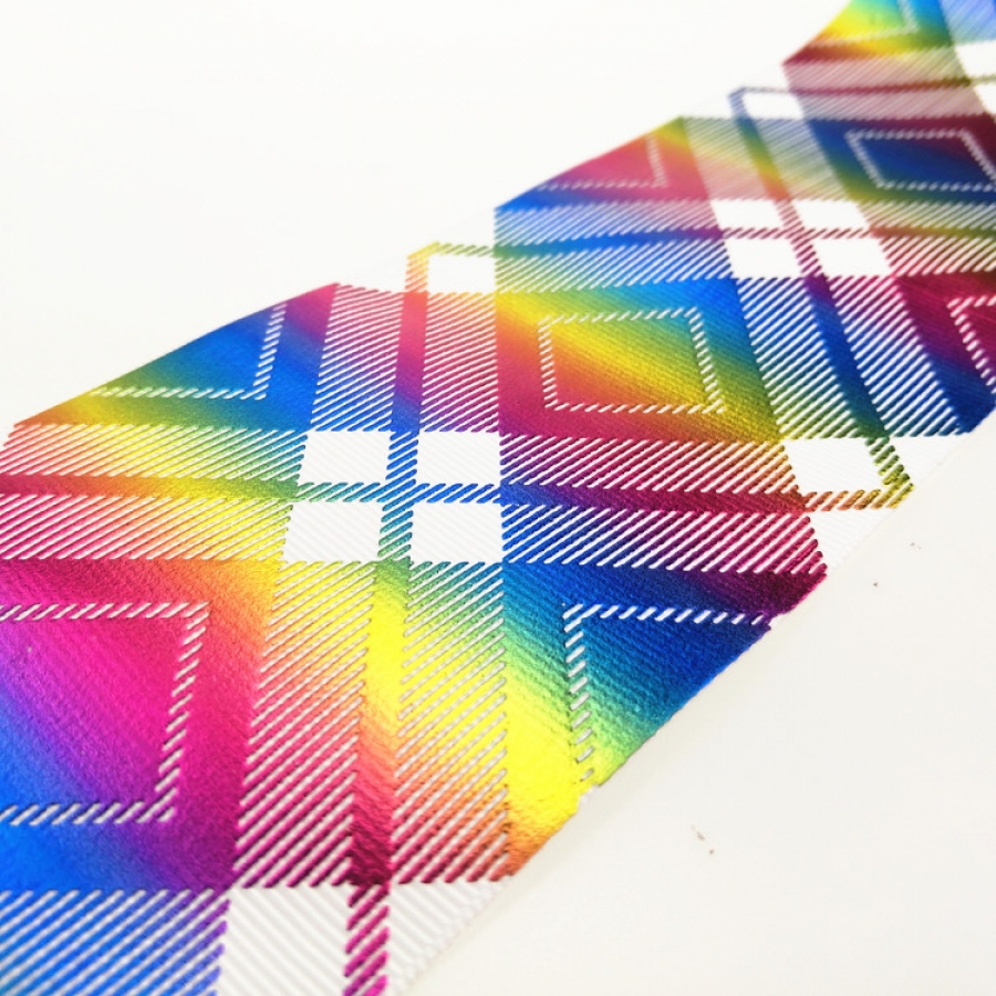 Rainbow Foil Printed Grosgrain Ribbon Checkered